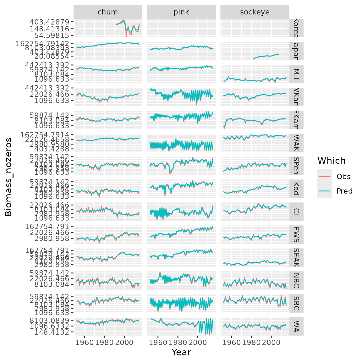 Resid = rbind( cbind(Data[,c('Species','Year','Region','Biomass_nozeros')], "Which"="Obs"),